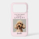Cute personalized premium look one photo pastel pink iPhone case with funny dog or any pet quote saying and customized name of the dog. The humorous phrase “cuteness level: EXPERT” is playful and modern. The foto template is set for best using a square picture. Stylish feminine girly pretty vibe and color of the case. Unique modern monochrome electronic tech accessory to protect your cellphone or as a thoughtful custom gift under 30 dollars for her. It could be a sweet keepsake of the favorite and beloved pet, a real member of the family. Having his cute portrait on the phone case it is always close to you, to cheer you up. This cellphone case can become a birthday, or Christmas, or graduation or even retirement gift.