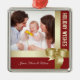 Custom Name & Photo Holiday Red, Gold Bow Metal Ornament