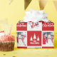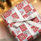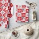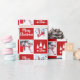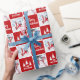 Custom red and white "Merry Christmas" wrapping paper with the family name, 2 custom photos, and a tree pattern. Great to wrap your xmas presents this winter and Holiday season.