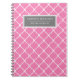 Custom Name Pink Grey Lattice Pattern Notebook