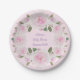 Custom Name, Pink Roses Paper Plate Baby Shower