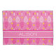 Pink and white tennis rackets with yellow tennis balls on pastel pink background. Cute pattern for tennis players and fans. pillow case with tennis pattern. Great as a gift for tennis player. Custom name at the bottom.