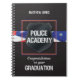 A police badge frames the words - Police Academy. Set on a black background, the words stand out to congratulate an officer on their graduation. A flag banner is seen behind the badge with a grunge look on the words and the flag signifying the grit and hard work of a law enforcement officer. Send best wishes and congratulations to the new police officer on their graduation from Police Academy! You can customize the name on this one for that personal touch.
