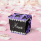 Custom name purple glitter high heels dress purse favor box