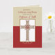 With a beautiful ornate cross on red, this card is perfect to give to someone who is entering the Catholic Faith. Very easy to add their name.