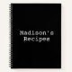 21.59 cm x 27.94 cm Deluxe Spiral Notebook, Black spiral, Recipe pages