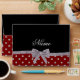 Red diamonds (not real diamonds) polka dots pattern background with a silver glitter bow (faux glitter, not real) ribbon personalized with your custom name gifts or monogram gifts or your initials you can write any words you like featuring an elegant and traditional fancy lettering Elegant gifts for women, ideal for weddings.