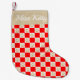 This beautiful Christmas stocking features a red and gold colored paw print checker pattern with ability to add a custom name for your dog or cat on the top part of the stocking!
