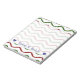 This notepad design features a pattern with red and green wavy lines. It also features a custom name near the bottom, between heart shapes. [~Z0000006]
