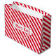 This “Custom Name Red/White Stripes Large Gift Bag” features red and white stripes and can be personalized with the name of the recipient. Make your gifts even more memorable with this stylish and customizable gift bag. order today!