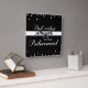 3D looking silver sparkles and words in white, all on a black background. A great Custom Name gift, souvenir, giveaway and party essential to congratulate a man or a woman on their Retirement. A very elegant Congratulations item that you can easily customize.