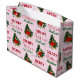 Custom Name Retro Christmas Girl Xmas Tree Pink Large Gift Bag