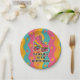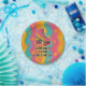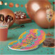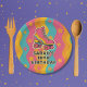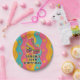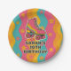 Make your roller skating party unforgettable with these custom paper plates featuring a bold pink skate with rainbow stripes, retro waves, and colourful daisy accents on the background. Personalize them with your girl's name and age for a fun and functional party detail that ties the whole theme together. Ideal table decor for birthday parties at the roller rink or at home.