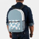 Custom kids back to school backpacks. Personalize your school bag with your child's name. This trendy blue chequered backpack is the perfect way to start a new school year. Customizing the name on the side helps the backpack not to get lost or misplaced.