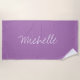 Stylish, classic, understated and custom beach towel featuring customizable name in a beautiful solid lavender purple.
