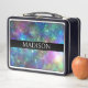 Liven up your lunchtime with a bit of stardust! This eye-catching lunch box features a dreamy, iridescent galaxy background in shimmering shades of purples, blues, and pinks. Personalize it with your name for a one-of-a-kind accessory that's as unique as the stars.