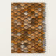 The custom photo cover and back design features rows of silver, bronze, and brown steampunk faux metallic scales. Fill in the template field with a name, initials or click customize to select a font style, size, and colour you prefer.