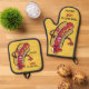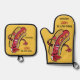 Custom Name, Text & Colour Hot Dog Oven Mitt & Pot Holder Set