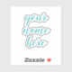Custom Modern Chic Name Text Script Water Bottle clear Stickers featuring your personalized text in a cute and elegant calligraphy font. The sticker is in a vibrant light turquoise blue, font style and colours are fully customizable.