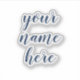Custom Modern Chic Name Text Script Water Bottle clear Stickers featuring your personalized text in a cute and elegant calligraphy font. The sticker is in a classic navy blue, font style and colours are fully customizable.