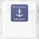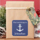 This blue bookplate sticker has a white ship's anchor and a place to personalize the book label sticker with the recipient's name.