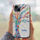 This phone case is decorated with a mosaic tree in the colours of the rainbow.