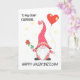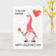 Une carte de voeux amusante pour la Saint-Valentin pour vous permettre de personnaliser sur la couverture, avec un mignon petit gnome, habillé en rouge, tenant une seule rose rouge dans une main et un ballon rouge en forme de coeur dans l'autre main. Ce gnome populaire de style scandinave est petit et bondé, avec une énorme barbe blanche qui atteint le sol et un grand casquette qui est tiré au-dessus de ses yeux pour que tout ce que nous pouvons voir de son visage soit son gros nez rose. Il y a un coeur décoratif accroché à la pointe de son casquette et son bac doré a des X rouges pour embrasser tout autour. L'accueil de couverture, dans une police amusante noire, est, '(espace pour vous d'ajouter le nom), HEUREUSE SAINTE-VALENTIN! ' L'arrière - plan est blanc avec une dispersion de petits coeurs dorés pâles. Le message intérieur n'est qu'une suggestion et vous pouvez facilement le modifier ou le supprimer complètement si vous recherchez une carte "vide intérieur".