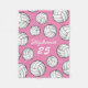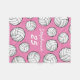 A cute and custom-name pink and white volleyball blanket with the player's name and number featured.