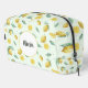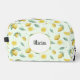 Add your own name on this cute watercolour lemons and leaves pattern design toiletry bag