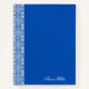 Elegant blue notebook featuring a white vector floral pattern with a customizable name and year on the cover. Perfect for journalling, school, planning, or as a thoughtful personalized gift.