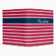 Personalize your binder with the recipient's name on front in white text on a red white and blue striped background. Binder has red and white horizontal stripes and one blue stripe for your text near the top.