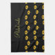 Custom name yellow sunflowers on black kitchen towel