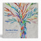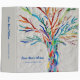 This decorative binder features a print of a rainbow coloured Tree of Life on a pale grey background.
