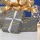 Personalize names, anniversary year or message in gold script text on grey background; perfect for wrapping that special gift. Click “Edit Design” to change colours and type styles.