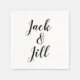 Custom paper wedding napkins with names of bride and groom or newlyweds couple. Stylish cocktail hour, lunch or dinner napkins with elegant handlettered script calligraphy typography. Pretty table decor for chic party venue. Handwritten style font with vintage look. Also nice for engagement or bridal shower. Change quantity to get the cheap bulk discount price. Most beautiful decorations for his and her special day.