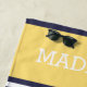 Enjoy total comfort at the beach or sitting poolside, and cool and dry off with this fun, colourful and comfy beach towel. Stand out in the sand with this beautiful contemporary ship anchor, on a classic and chic dark navy blue and white stripes pattern. With room to personalize or customize with name, initials or monogram of your choice or any kind of nautical expression like "Ship Ahoy", "Sail Away", "Anchors Aweigh", or "Bon Voyage", on a light yellow coloured background. Created for the captain, lover of boating, sailing, vacation and bright sunny summer days on the water or beach.