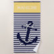 Custom Nautical Anchor Blue Sunny Yellow Stripes Beach Towel