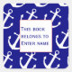 This blue bookplate sticker has an white anchor pattern. The text says 'This book belongs to'. After that you may enter the recipient's name.