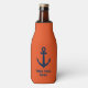Custom nautical boat anchor bottle coolers. bright orange buoy colour with navy blue ship anchor. Personalizable nautical anchor can coolers with anchor. Maritime design with name initial letters of bride and groom / newly weds couple. Add your own date of marriage and names. Make your own cozy wedding favour / souvenir for guests at your beach theme party. Romantic sailing theme beverage holder design. Perfect for alcoholic drinks like beer. Cool typography. Change the quantity to get the cheapest price per cooler. Maritime sailing / beach theme. Vintage Boat / ship anchor design with custom slogan or quote. Alos great for boating trips, sailing, bridal shower, engagement, bbq, anniversary, reunion gathering,