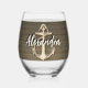 Custom Nautical Boat Anchor Name Wood Stemless Wine Glass
