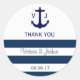 Custom Nautical Navy Blue Stripes Anchor Wedding Classic Round Sticker