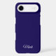 Add a sleek and personal touch to your device with this minimalist navy blue phone case. Featuring a custom name in elegant white cursive at the bottom, this case combines style and identity. Designed to fit iPhone 17 and other models, it offers durable protection with a refined aesthetic. Perfect for everyday use or as a thoughtful gift.