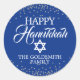 Custom Navy Blue White Holiday HAPPY HANUKKAH Classic Round Sticker