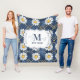 Custom Navy Daisy Gingham Monogram Decor Fleece Blanket