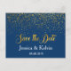 Custom Navy Gold Foil Confetti Save the Date Announcement Postcard