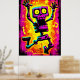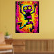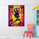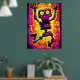 Custom Neon Skeleton Retro Halloween Design Poster
