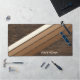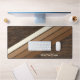 Custom Neutral Brown Stripes Art On Faux Wood Desk Mat