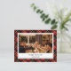 Unique, classic, trendy, pretty and decorative Holiday card. Cute Happy New Year greeting text message and room to customize or personalize with a photo and family name (or individual names) of your choice, on a classy black, white, yellow and red coloured plaid background.