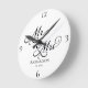 Add a romantic touch to your space with this elegant black and white "Mr. and Mrs." wall clock, easily personalized with your last names and wedding year. The classic calligraphic script and minimalist clock design offer a sophisticated look that works beautifully in bedrooms, living rooms, or kitchens. Perfect for newlyweds or couples, this clock makes a perfect keepsake, wedding or anniversary gift.