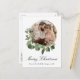 Personalize this Holiday postcard and share a special wedding photo from your special day. Modern and elegant wreath frame with green leaves and white flowers surround the photo, customizable and easy to use template. Edit the text "From the New Mr. and Mrs." with your last name, change the special message on the back and return address. With them all a Merry Christmas and keep the connection going with your wedding guests, family and friends.